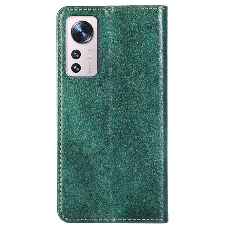 Flip-Dekselet Til Xiaomi 12 Pro, I Kunstskinn Med Sømmer, Gir Optimal Beskyttelse For Telefonen.