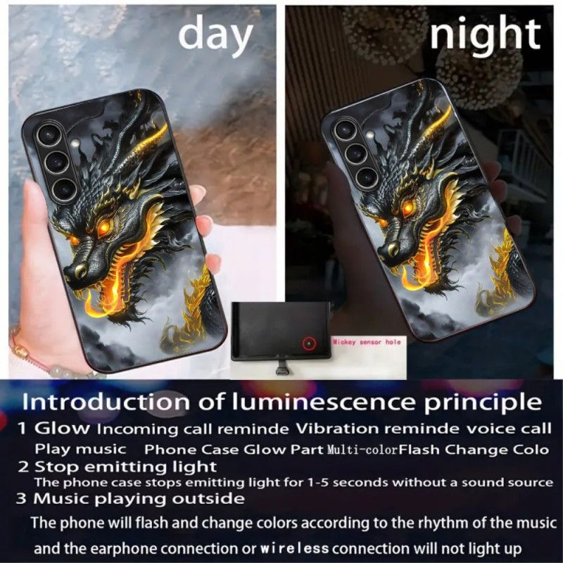 Den Kombinerer Stil Og Beskyttelse, Og Tilbyr En Elegant Svart Dragedesign Med Musikkreaktive Lyseffekter.