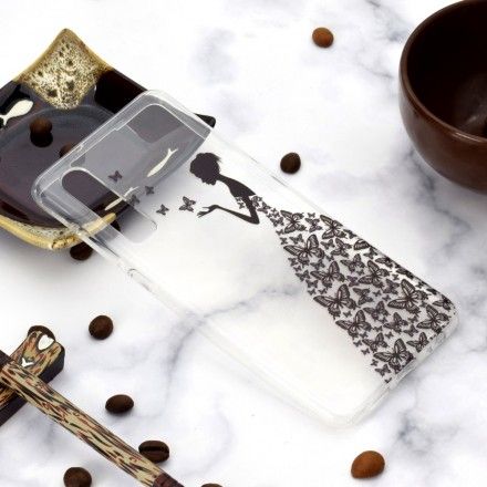 Et Gjennomsiktig Deksel, Dekorert Med En Kvinne I En Sommerfuglkjole, Som Går I Ett Med De Fine Kurvene På Huawei P30.