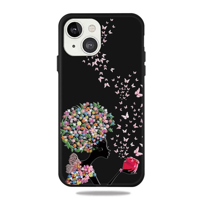 Flowery Head Woman-Dekselet Beskytter Iphone 13 Mini Veldig Godt Og Gir Den Et Trendy Og Originalt Utseende.