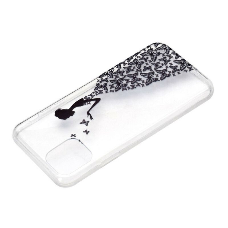 Et Gjennomsiktig Deksel, Dekorert Med En Kvinne I En Sommerfuglkjole, Som Går I Ett Med De Fine Kurvene På Iphone 13.
