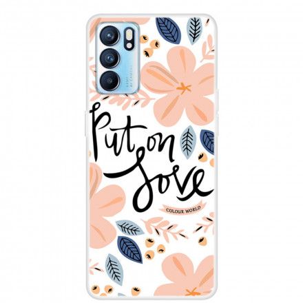 Beskytt Og Dekorer Din Oppo Reno 6 5G Med Dette Praktfulle Etuiet Med Meldingen Put On Love Som Består Av Fargerike Blomster.