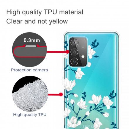 Dette White Flowers-Dekselet Beskytter Din Samsung Galaxy A32 4G Veldig Godt Mot Støt, Riper, Fingeravtrykk Og Støv.