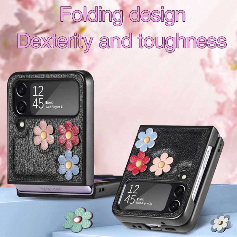 Deksel Til Samsung Galaxy Z Flip 4 Folio Deksel Imiterte Skinnblomster