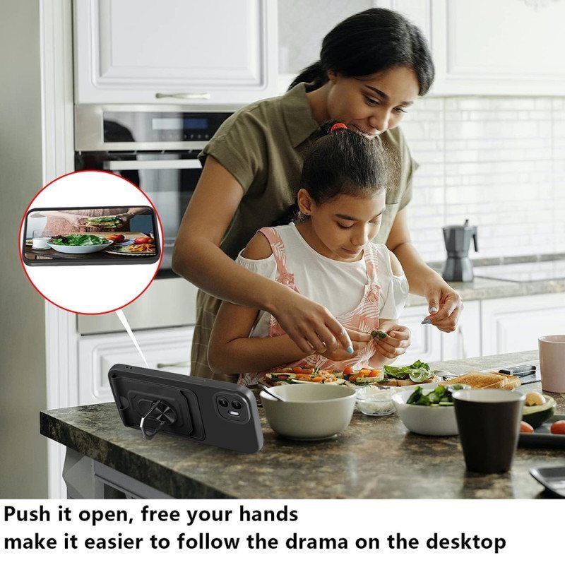 Velg Dette Multifunksjonelle Dekselet Med Ledning Som Er Utstyrt Med En Praktisk Kortholder Og En Støttering For Din Xiaomi Redmi A1.