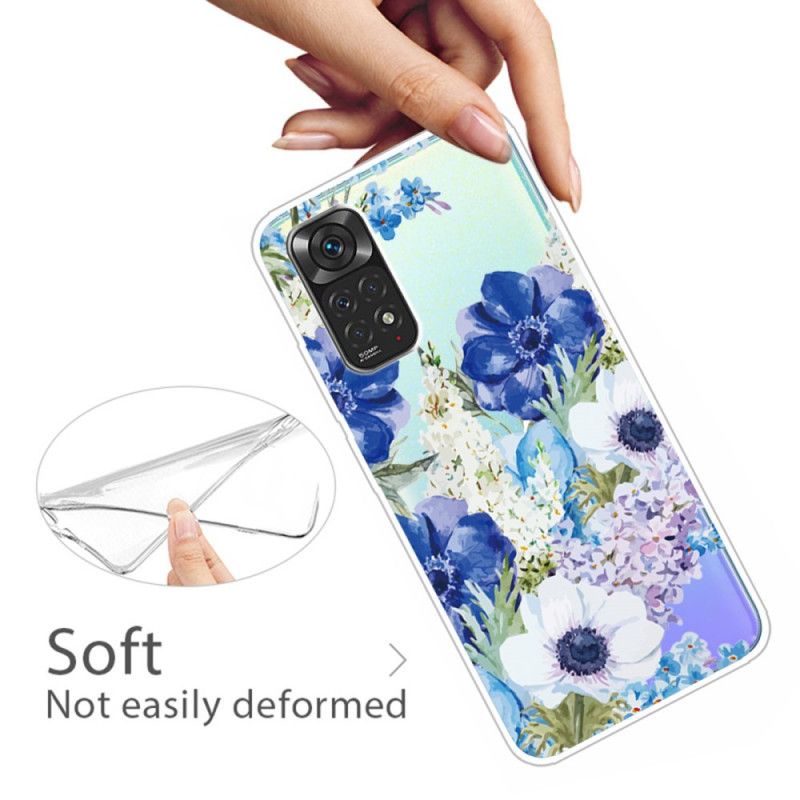Den Gjennomsiktige Watercolor Blue Flowers-Dekselet Sikrer Din Xiaomi Redmi Note 11 / 11S Optimalt Og Elegant På Daglig Basis.