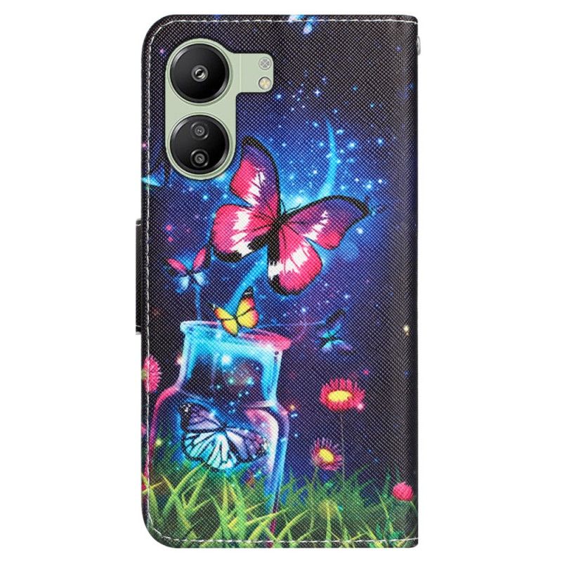 Folio Deksel Poco C65 Flaske Og Sommerfugl Med Stropp