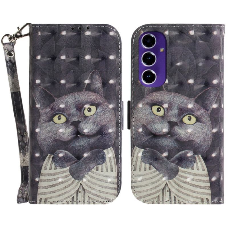 Folio Deksel Samsung Galaxy S24 Fe Grå Katt Med Stropp Beskyttelse Deksel