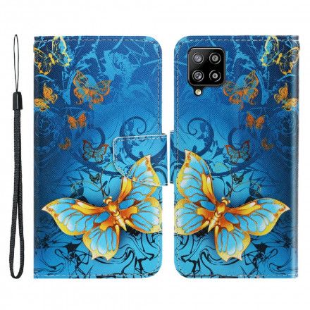Folio Deksel Til Samsung Galaxy A22 4G Med Kjede Variasjoner Av Sommerfuglrem