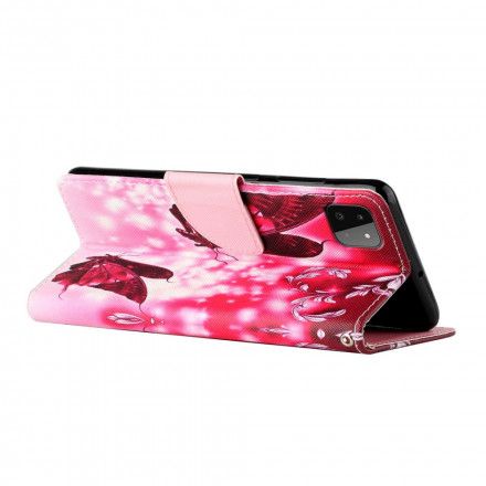 Folio Deksel Til Samsung Galaxy A22 5G Røde Flygende Sommerfugler