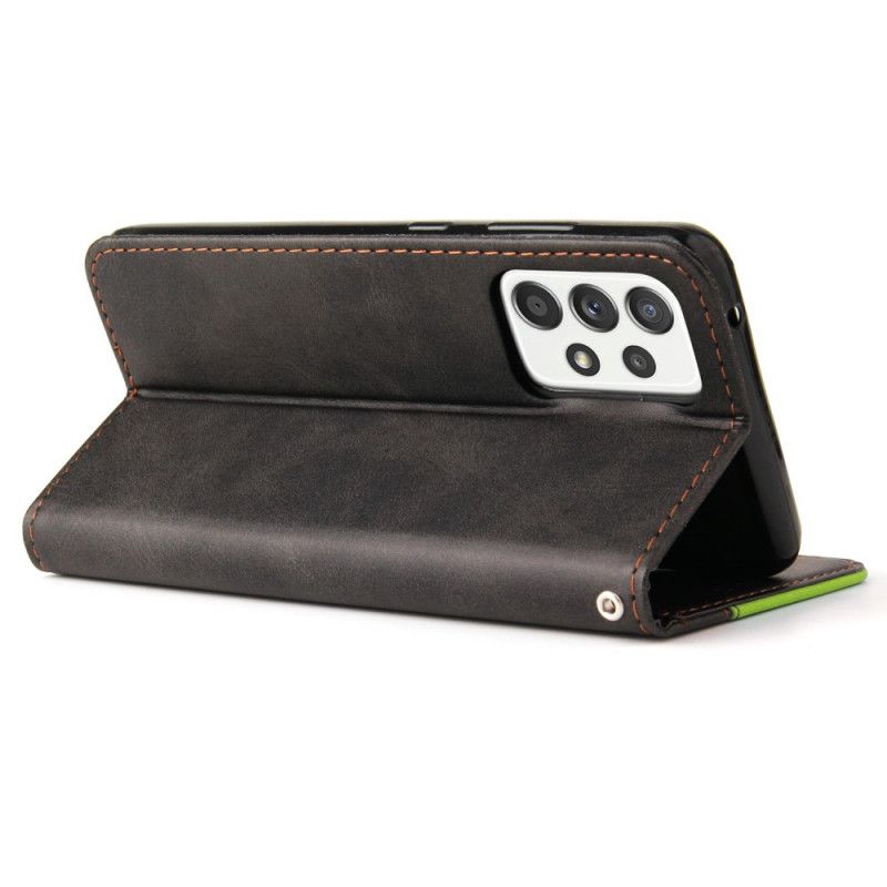 Det Tofargede Dekselet I Kunstskinn Er Ideelt For Å Beskytte Din Samsung Galaxy A72 4G / A72 5G På En Optimal Og Multifunksjonell Måte.