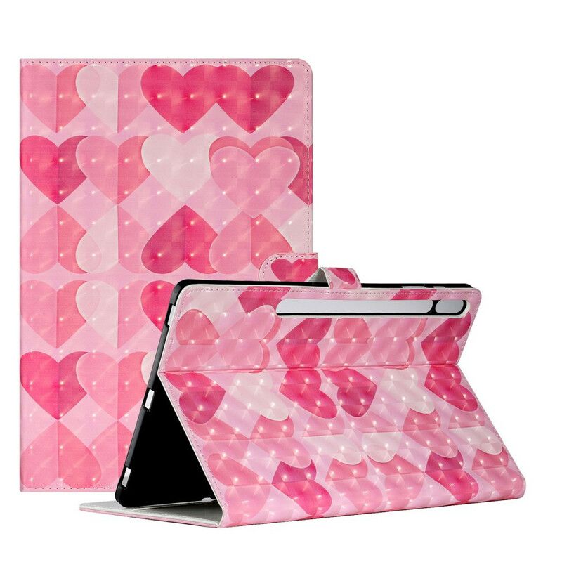 Folio Deksel Til Samsung Galaxy Tab S7 Plus / Tab S8 Plus Hjerter
