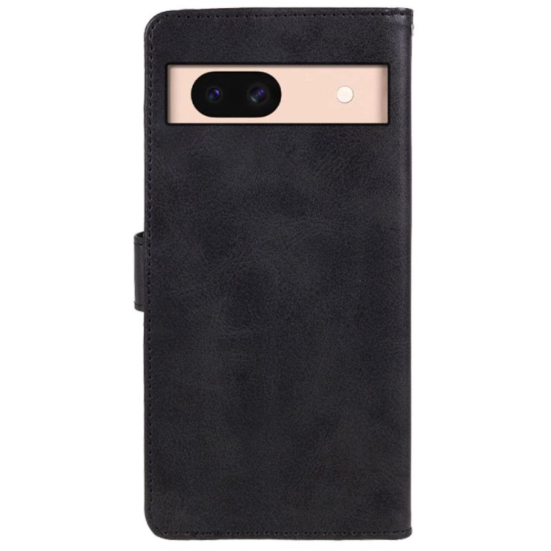 Lærdeksel Folio Deksel Google Pixel 8a Mobildeksel Ensfarget Skinneffekt Med Stropp