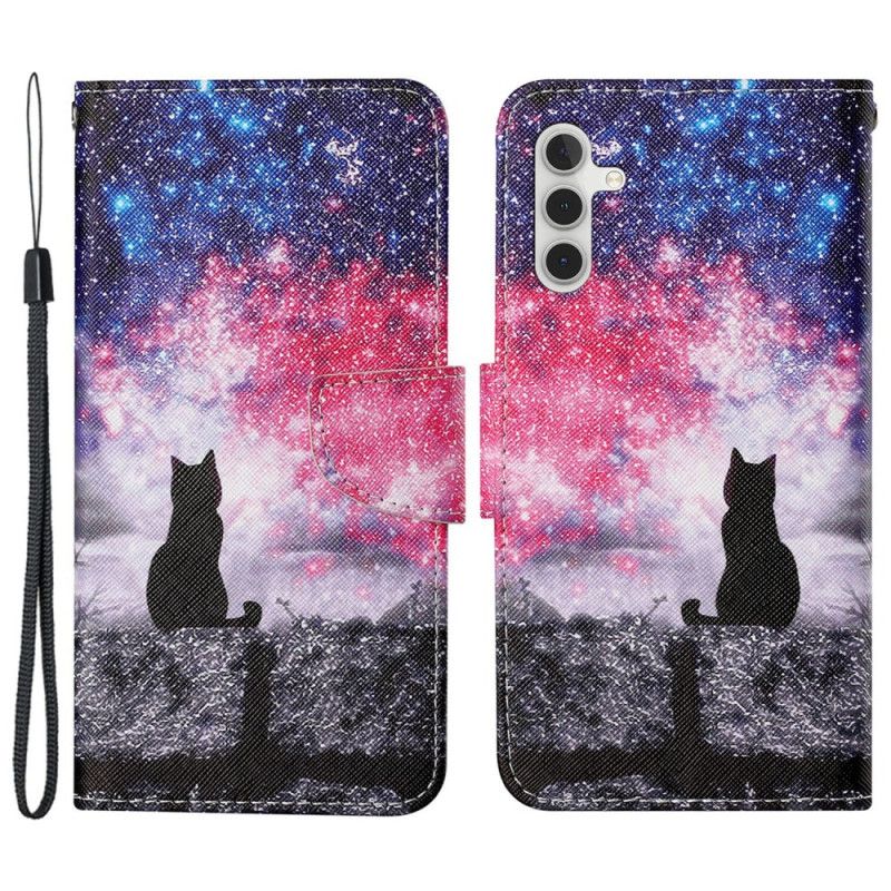 Lærdeksel Folio Deksel Samsung Galaxy A15 5g Mobildeksel Stjernehimmel Og Katt
