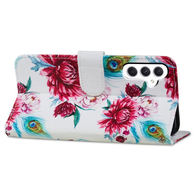 Lærdeksel Folio Deksel Samsung Galaxy A55 5g Mobildeksel Røde Blomster Med Stropp