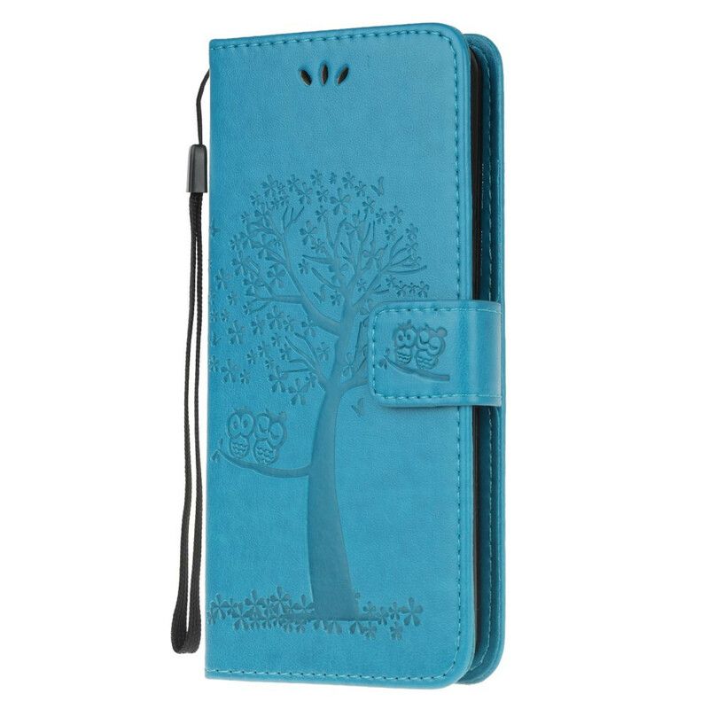 Leather Effect Tree And Owls-Dekselet, Med Magnetisk Klaff, Beskytter Din Samsung Galaxy A20S.