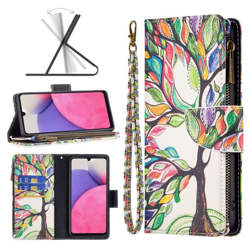 Din Samsung Galaxy A33 5G Er Vakker Og Veldig Godt Beskyttet Med Dette Multifunksjonelle Dekselet, Med Glidelåslomme, Dekorert Med Et Tre.