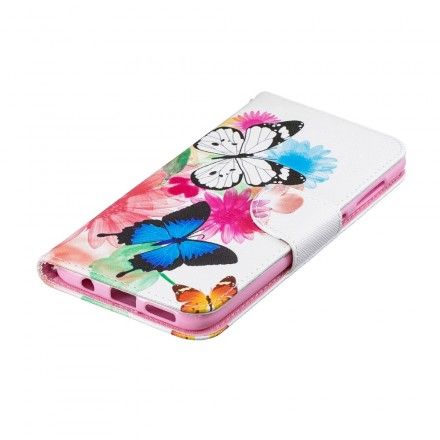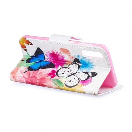 Lærdeksel Til Samsung Galaxy A50 Malede Sommerfugler Og Blomster