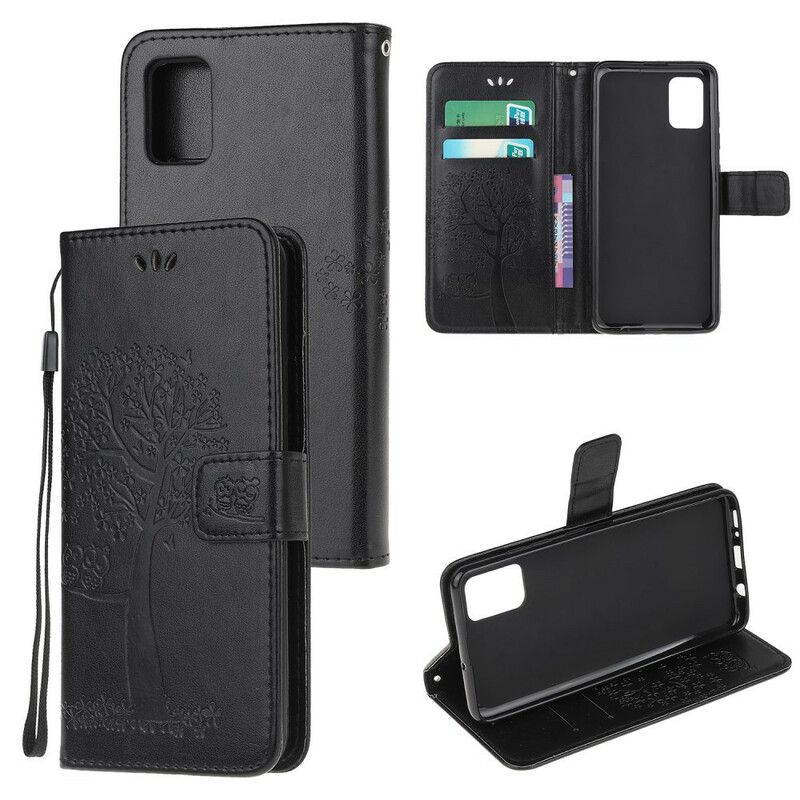 Leather Effect Tree And Owls-Dekselet, Med Magnetisk Klaff, Beskytter Din Samsung Galaxy S10 Lite.