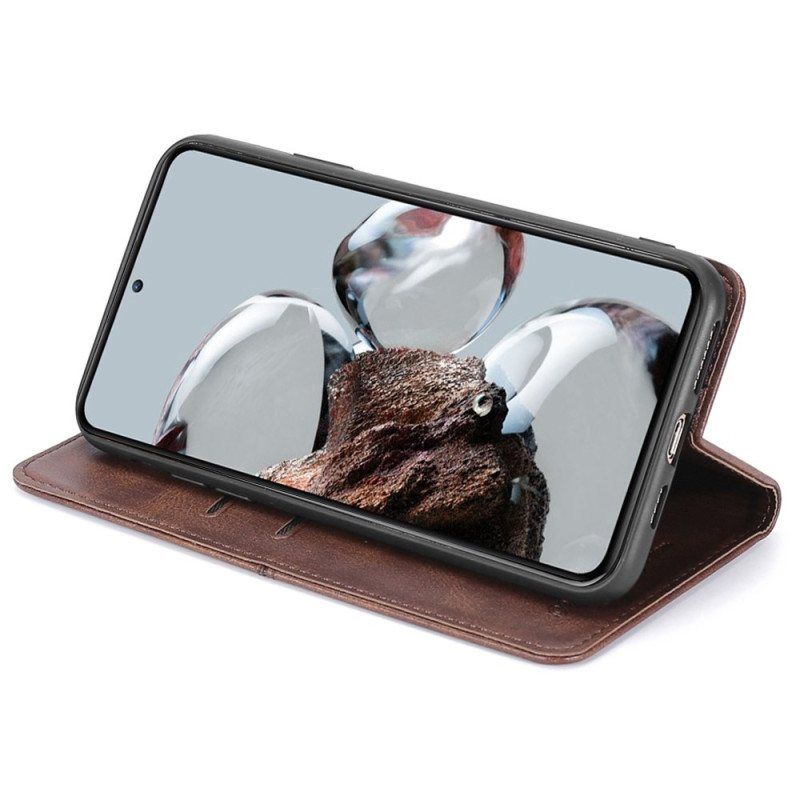 Dekselet I Skinnstil Med Synlige Sømmer Fester Xiaomi 12T / 12T Pro Fint Mens Det Fungerer Som En Lommebok.