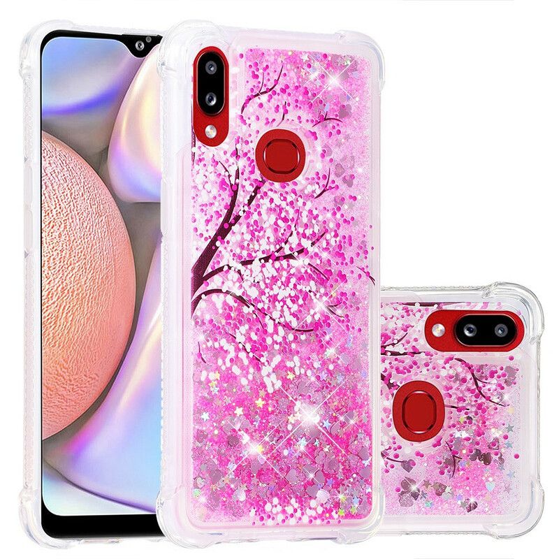 Dette Vakre Og Slitesterke Dekselet Er Designet For Din Samsung Galaxy A10S! Treet Med Glitterblomster Beskytter Smarttelefonen Din.