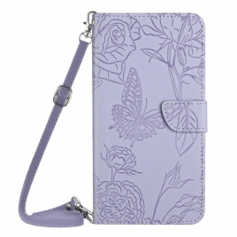 Lærdeksel Til Xiaomi Redmi Note 12 5G Sommerfugler Og Skulderstropp